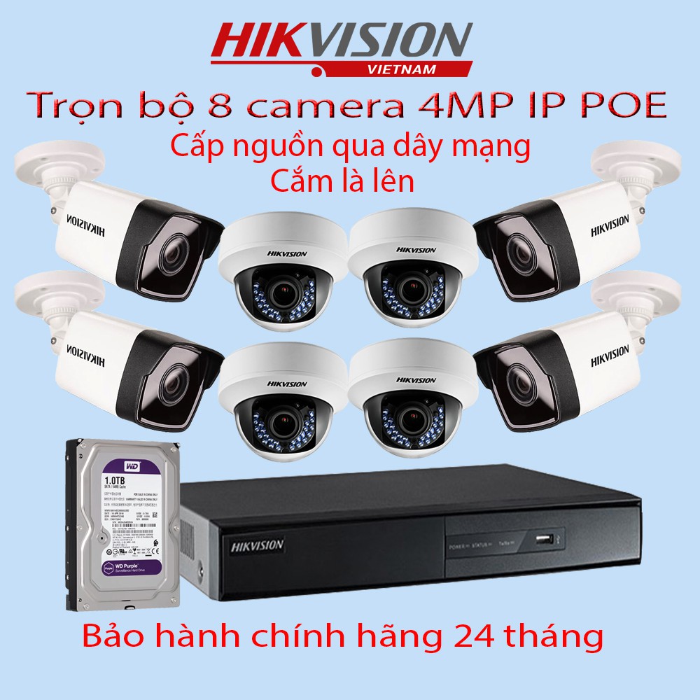 Giới thiệu Trọn Bộ 8 Camera IP PoE Hikvision 4.0MP Tầm Xa Hồng Ngoại 30M Cấp Nguồn Qua Cáp Mạng PoE - Hàng Chính Hãng