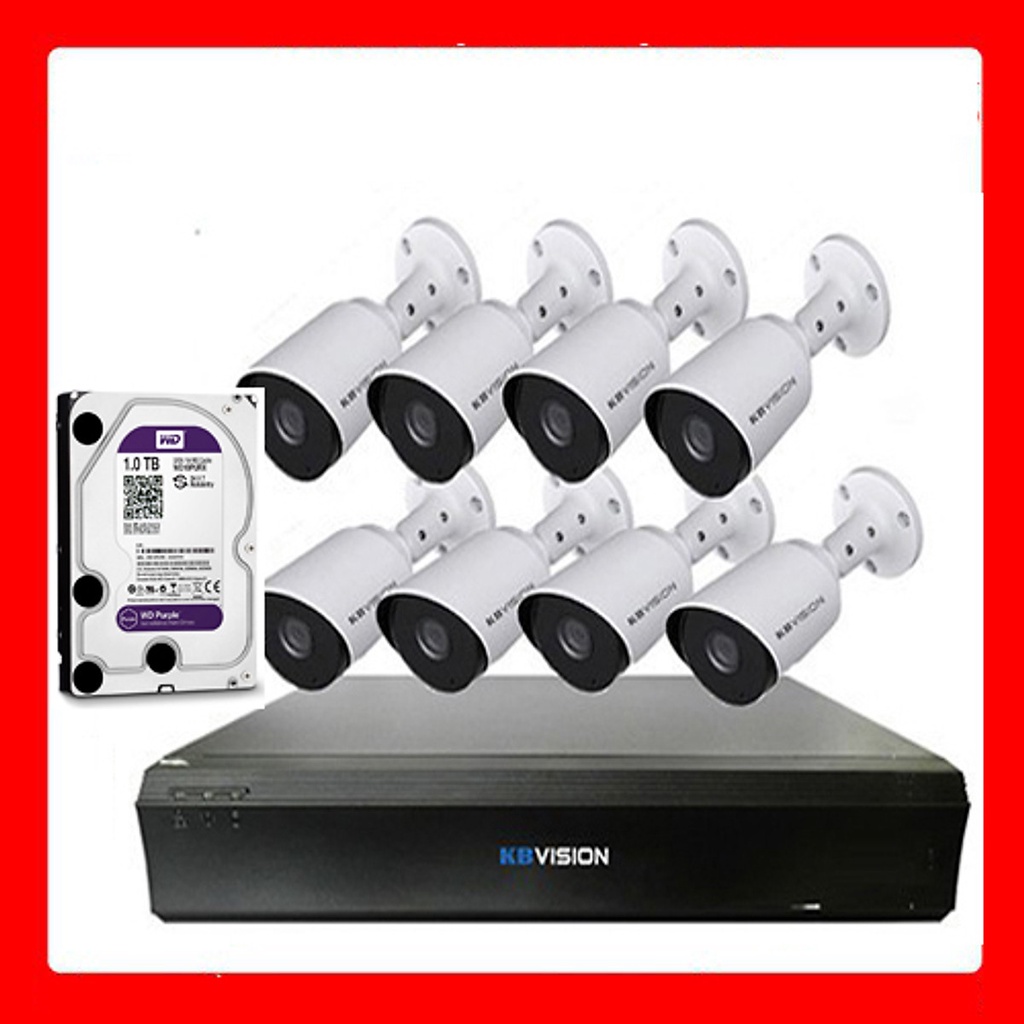 Cameras & Flycam > Camera giám sát > Camera giám sát kết nối internet || Trọn bộ 8 camera KBVISION Full HD 1080p, đầy đủ phụ kiện đi kèm, đầu ghi hỗ trợ ổ cứng lên đến 6Tb - Hàng chính hãngCòn hàng
