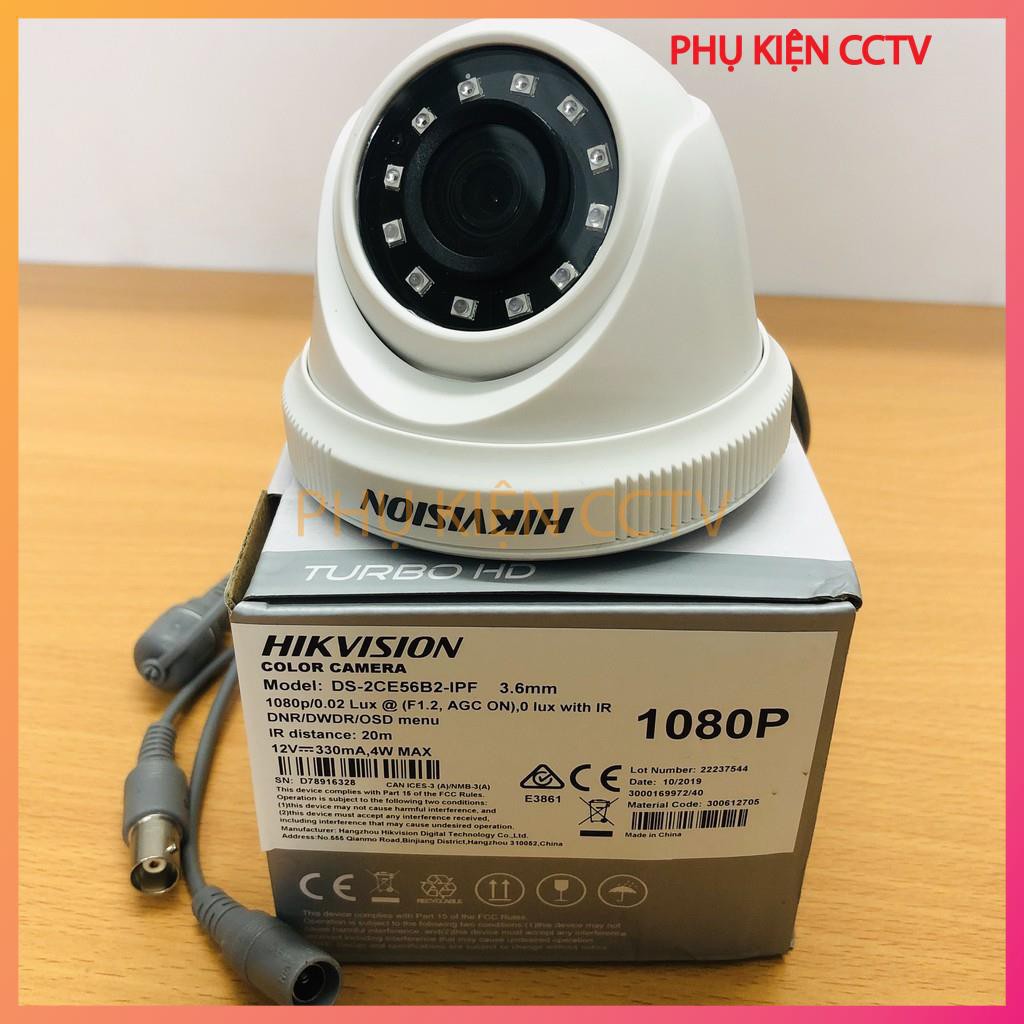 2. 4c Mắt camera Hikvision: gồm 2 Mắt DS-2CE16B2-IPF(mắt thân trụ) và 2 Mắt DS-2CE56B2-IPF( mắt bán cầu) độ phân giải 2Mp Full HD 1080P. Hồng ngoại ban đêm 20m, Ống kính 3.6mm, Chế độ hình ảnh STD/ HIGH-SAT, Chống ngược sáng DWDR, Tiêu chuẩn chống nước, bụi IP66. Phù hợp cho lắp cả trong nhà và ngoài trời.
