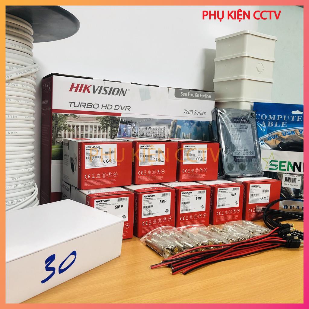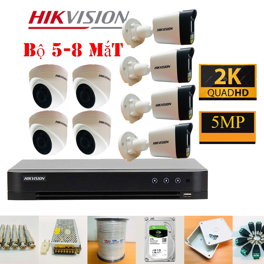 Trọn Bộ Camera 5/6/7/8 Mắt 5Mp Hikvision Chính Hãng (FULL PHỤ KIỆN LẮP ĐẶT), Ổ Cứng Tùy Chọn
