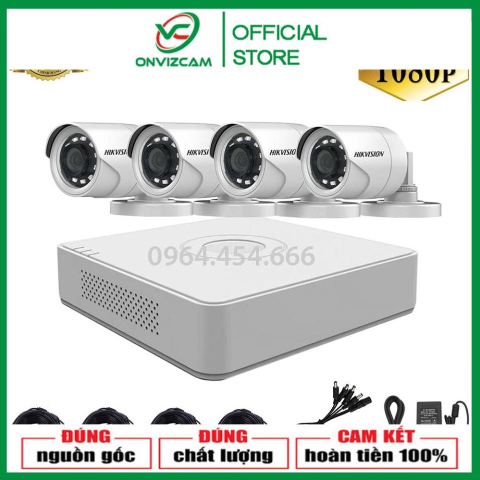 Trọn Bộ Camera 4 Mắt Hikvision 2.0MP Full HD Chính HãngĐÃ CÓ DÂY BẤM SẴN + NGUỒN + PHỤ KIỆN