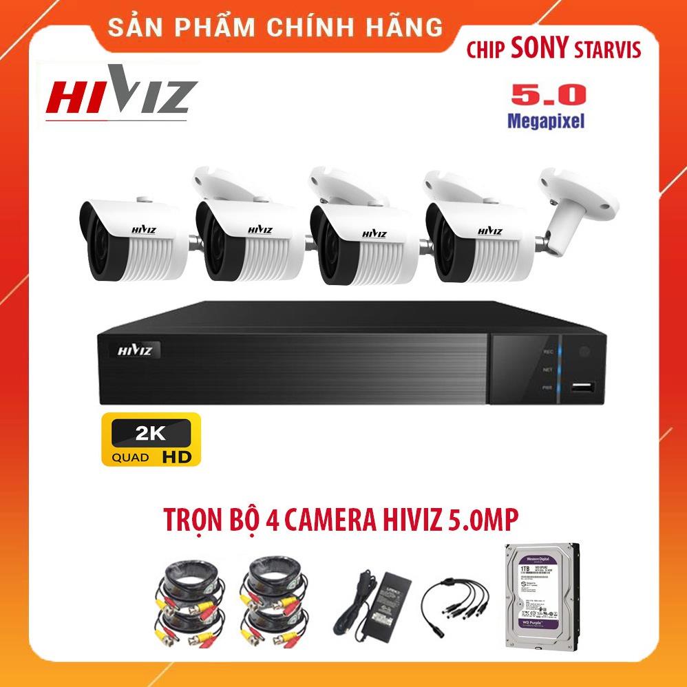 ❎Trọn bộ 4 Camera HIVIZ 5.0MP [2K] - Hàng chính hãng, bảo hành 12 tháng, đầy đủ phụ kiện bao gồm: