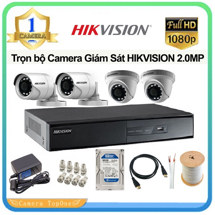 Trọn Bộ Camera Giám Sát Hikvision 2.0MP Full HD 1080 Bộ 4 Camera Chính Hãng