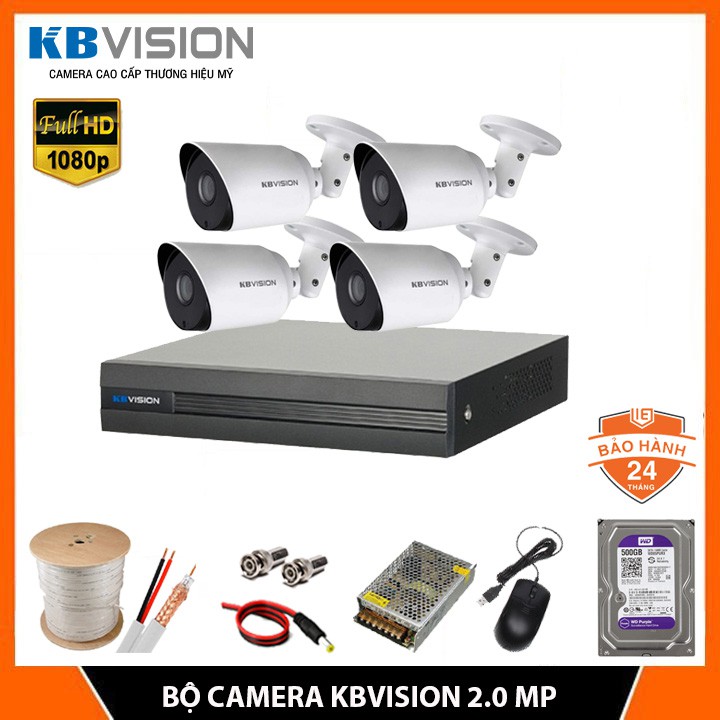 Giới thiệu Trọn Bộ Camera giám sát KBVISION 2.0MP - Bộ 4 Camera FHD 1080P, Kèm HDD (0GB/500GB/1TB/2TB), Đủ phụ kiện lắp đặt