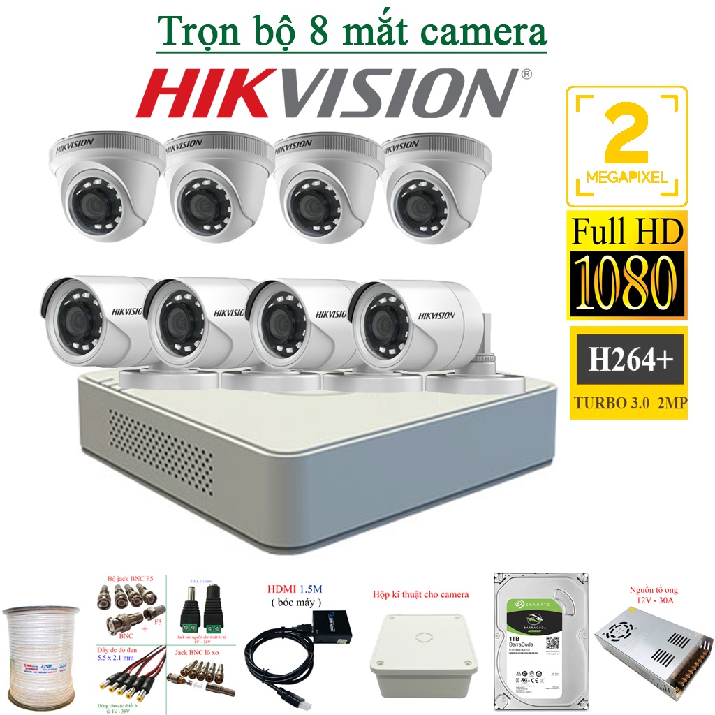 Trọn Bộ Camera Hikvision 2Mp 5/6/7/8 Mắt FULL HD 1080P Chính Hãng bảo hành 24 tháng (FULL PHỤ KIỆN LẮP ĐẶT)