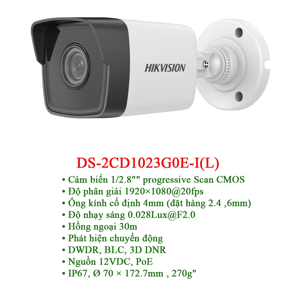 + 1/2/3/4c: Mắt camera ip 2mp DS-2CD1023G0E-I(L)( mắt thân trụ) hoặc DS-2CD1123G0E-I(L) ( mắt bán cầu) [quý khách vui lòng chọn số lượng mắt khi đặt hàng].