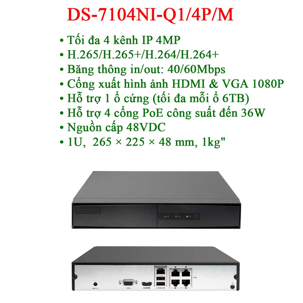 + Đầu ghi DS-7104NI-Q1/4P: