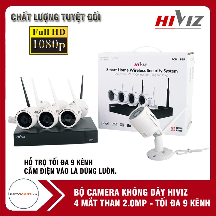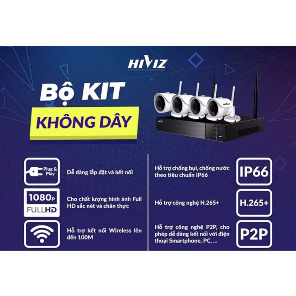 Trọn Bộ Camera KIT HIVIZ Mẫu HI-KIT 904W không dây FULL HD 1080P SIÊU NET Đầy đủ cắm nguồn là dùng- HÀNG CHÍNH HÃNG