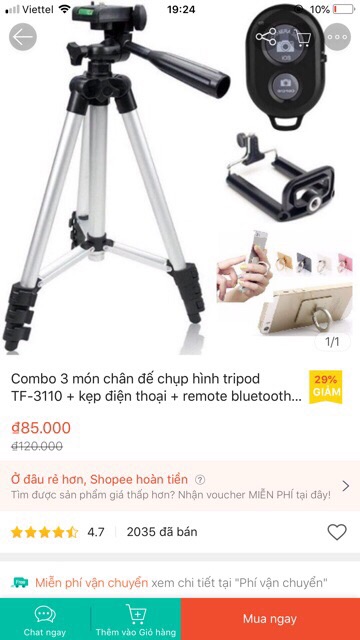Trọn bộ chụp hình 3 món :chân đế chụp hình + kẹp điện thoại+ remote bluetooth