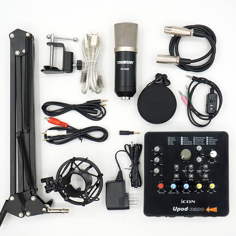 Trọn bộ combo thu âm, hát karaoke, Livestream, SOUNDCARD ICON NANO, MIC TAKSTAR PC-K500 và TAI NGHE TS-2260