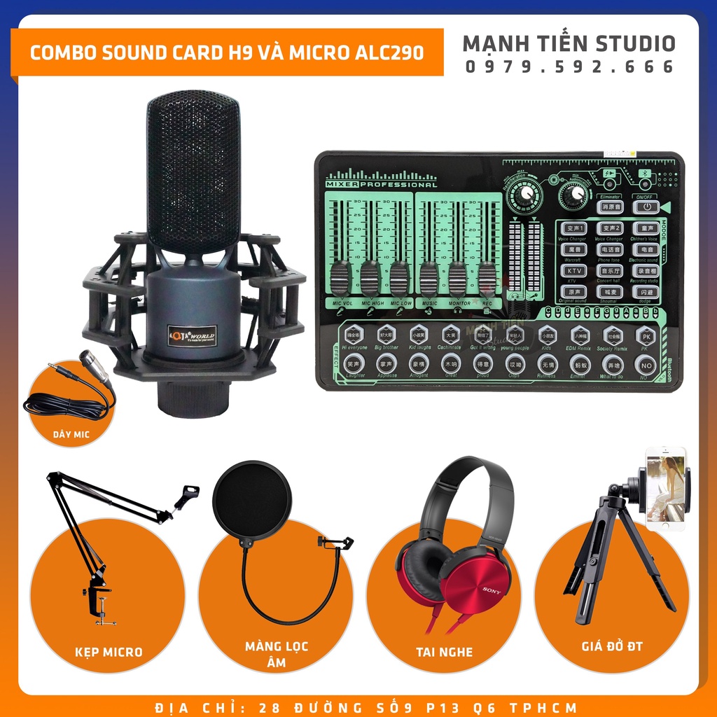 Trọn bộ combo thu âm livestream karaoke soundcard H9 micro ALC290 tặng full phụ kiện cao cấp bảo hành vàng 12 tháng