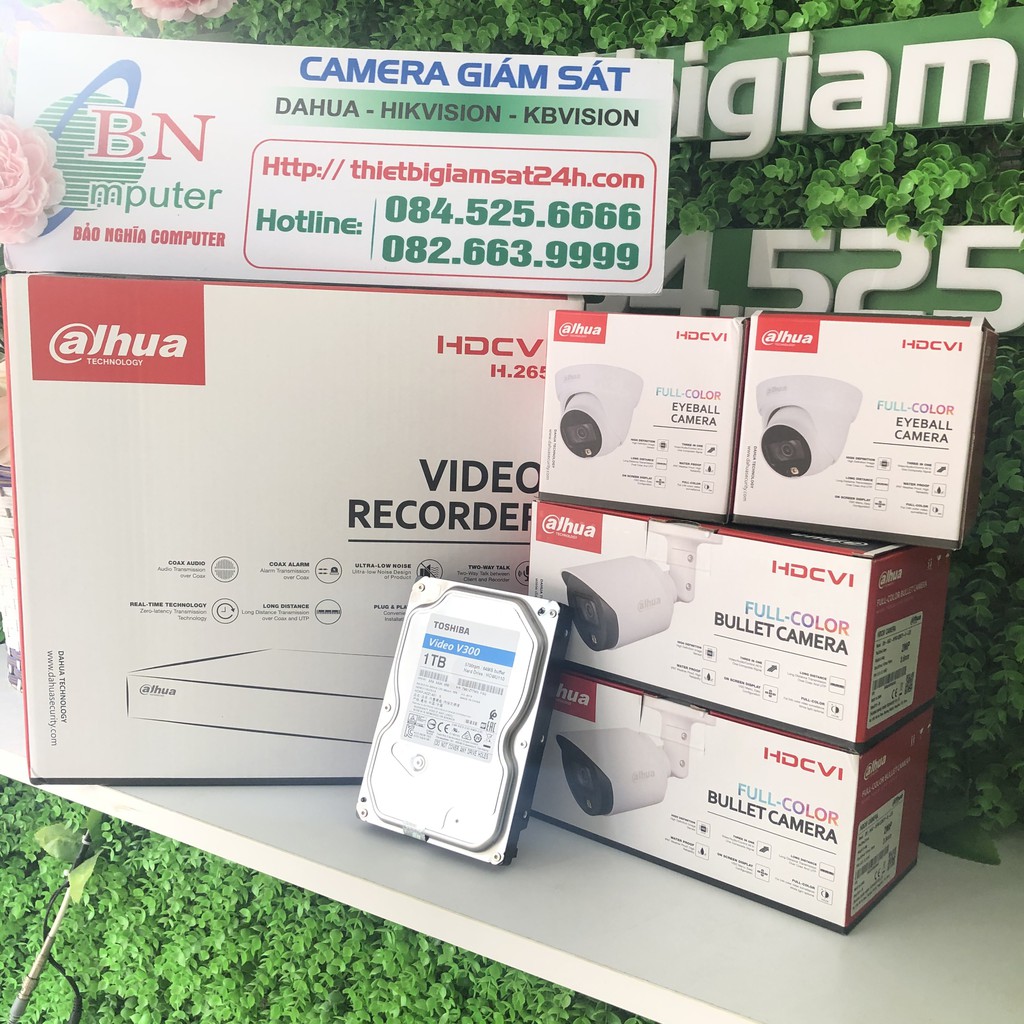 Trọn Bộ Full - Color 2.0 Dahua Đầu 5104HS-X - 02 mắt 1239TLP-A-LED -02 Mắt 1239TP-A-LED -01 HDD 1TB Tosiba FPT .