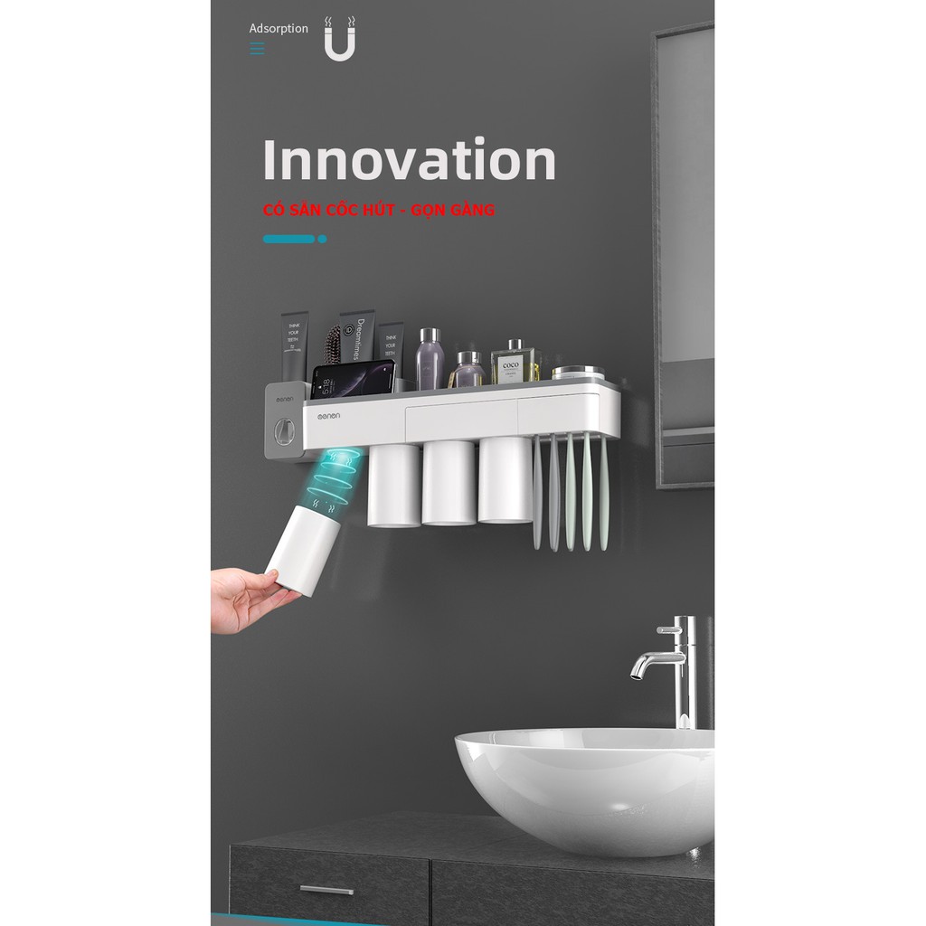 Trọn bộ Kệ kem đánh răng, bàn chải đánh răng đa năng Aenon MENON 208 - Màu ghi