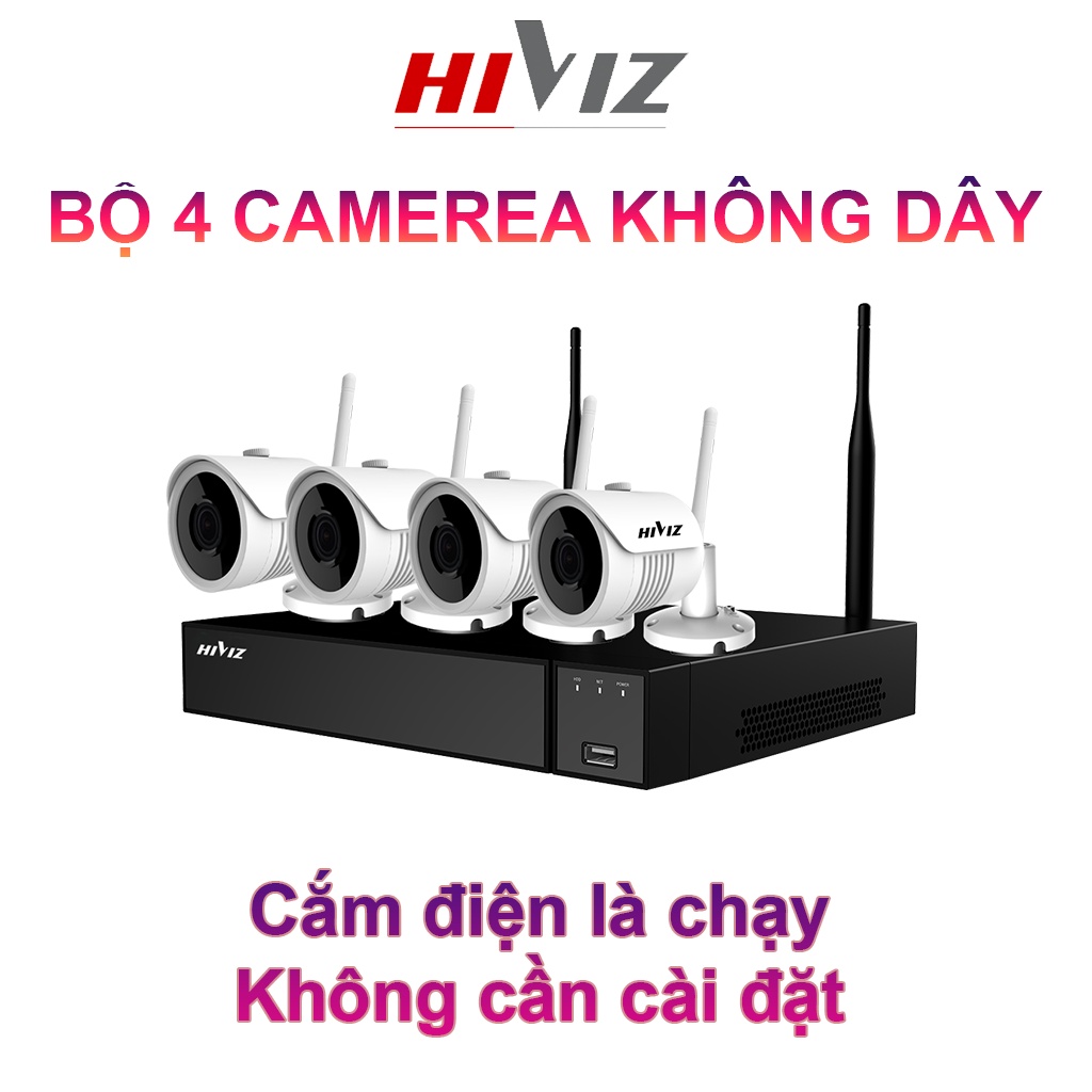 🎁HỖ TRỢ PHÍ SHIP: ĐƠN HÀNG TỪ 50K HỖ TRỢ SHIP 20K/ ĐƠN HÀNG TỪ 300K HỖ TRỢ PHÍ SHIP 70K🎁BỘ CAMERA GIÁM SÁT KHÔNG DÂY HIVIZ 2.0MPX, 4 CAMERA TRỤ KIM LOẠI, KÈM ĐỦ PHỤ KIỆN LẮP ĐẶT - HÀNG CHÍNH HÃNG.