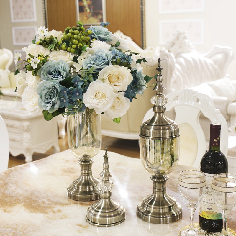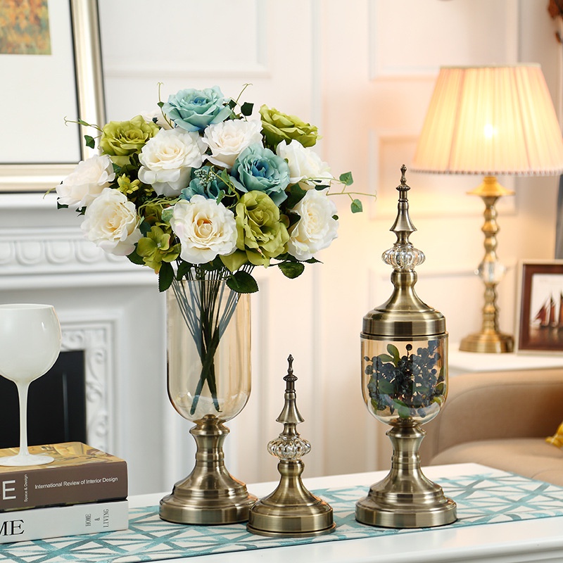 Trọn Bộ Lọ Hoa Thủy Tinh Cao Cấp, Bình Cắm Hoa Đế Kim Loại Cổ Điển Sang Trọng | MAY Decor