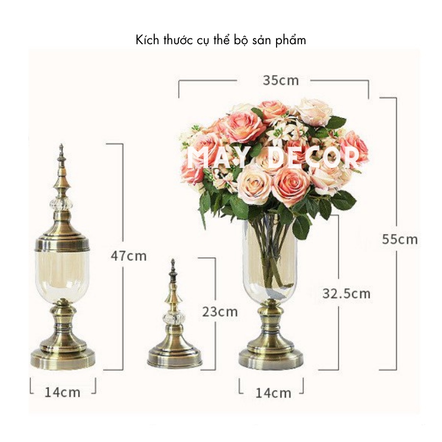Trọn Bộ Lọ Hoa Thủy Tinh Cao Cấp, Bình Cắm Hoa Đế Kim Loại Cổ Điển Sang Trọng | MAY DecorChúc Quý khách mua sắm vui vẻ, MAY Decor hân hạnh phục vụ Quý khách!