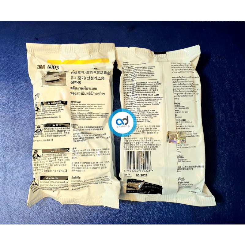 – 2 Phin Lọc 3M 6003 (Đóng trong 1 túi): Xử lý khí độc hơi hữu cơ và vô cơ. Định kỳ thay 15-30 ngày hoặc khi cảm nhận được mùi, khí