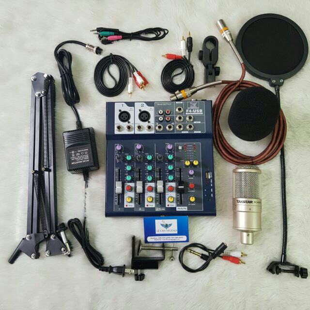 I.Những ưu điểm của thiết bị mixer F4- trong hệ thống âm thanh: Mixer F4- hiện đang dần trở nên phổ biến hơn trong những hệ thống âm thanh hiện đại khi nó sở hữu nhiều ưu điểm vượt trội, đáp ứng tốt nhu cầu giải trí của người chơi ( Live stream, tạo bộ trộn hiệu ứng âm thanh gia đình). - Sau một thời rất hot của những Soud card K10, V8, V9….hát liver strem. Mọi người dung đều nhận ra cái hay nhất của dòng Mixer F4-Yamaha. Được thiết kế nhỏ gọn với ưu điểm vượt trội so với các dòng Soud card hiện nay, chỉnh nhạc hay hơn, chỉnh giọng hát tốt hơn. II.Trọn bộ micro thu âm PC-K200 + Mixer F4 hát liver stream, hát karaoke gia đình gia đình gồm: 1. Mixer F4 đầy đủ phụ kiện ( Giắc 6ly ra 3ly, dây lấy nhạc) 2. Míc thu Âm Takstar PC-K200. 3. Chân kẹp bàn. 4. Màng lọc âm POP Filter. 5. Dây live MA2.Giá KINE