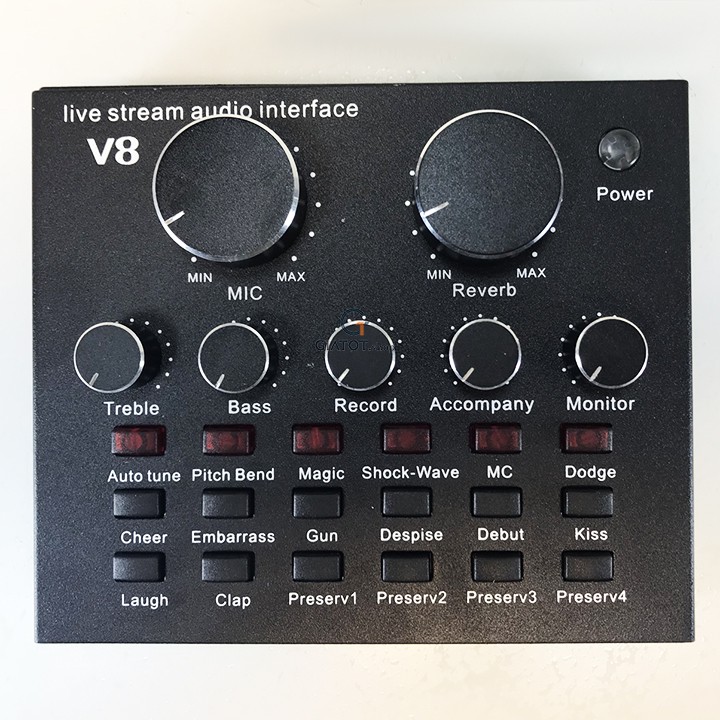 Khác với các dòng Soundcard thông dụng trên thị trường, Sound Card V8 được tích hợp thêm pin và bạn cũng không cần phải dùng dây livestream, với vài thao tác đươn giản bạn đã có thể sử dụng để livestream 1 cách tương đối dễ dàng. Việc tích hợp thêm Pin giúp bạn có thể sử dụng sản phẩm ở mọi lúc mọi nơi mà không cần cấp nguồn cho nó. Livestream bán hàng giờ đây sẽ dễ dàng hơn bao giờ hết. Ngoài các tính năng điều chỉnh thông dụng như tất cả các dòng Sourcard khác, Sound Card V8 còn có tới 12 hiệu ứng âm thanh phụ, rất thích hợp cho việc thu âm hay lồng tiếng cho các Video