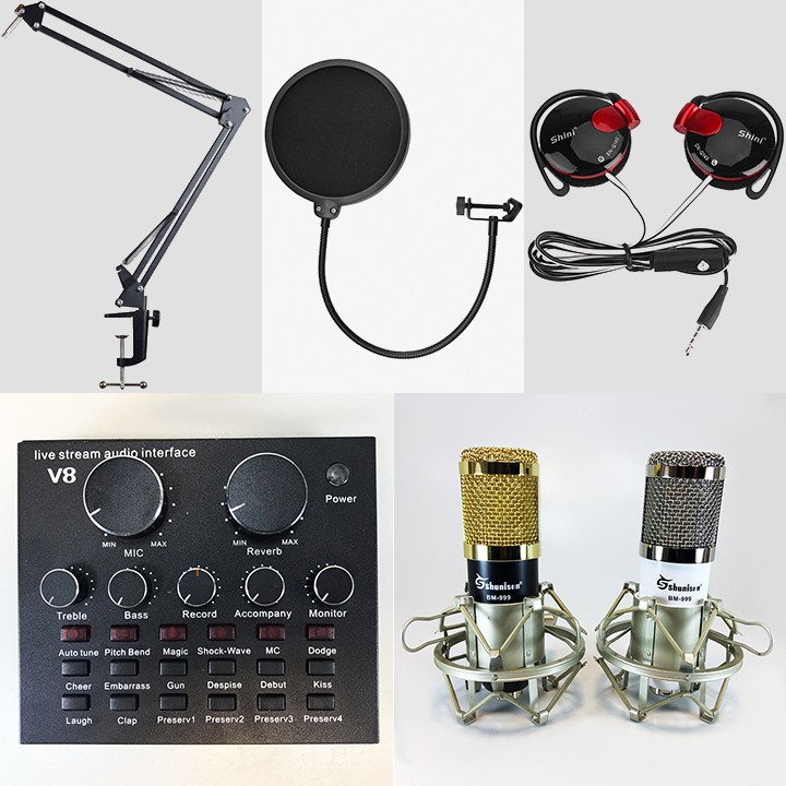 Trọn bộ Micro thu âm BM999 + Soundcard V8 và phụ kiện hát Karaoke