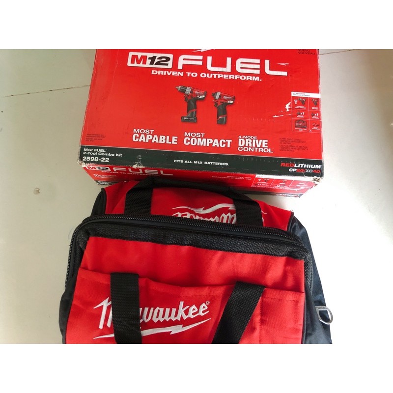 Combo milwaukee 2598-22 m12 mới 100% hàng nhập Mỹ Milwaukee M12 bao gồm máy khoan búa 1/2 inch, trình điều khiển tác động 1/4 inch, pin Redlithium 2.0Ah & 4.0Ah, bộ sạc lithium-ion,và túi sáchGiá LUNC