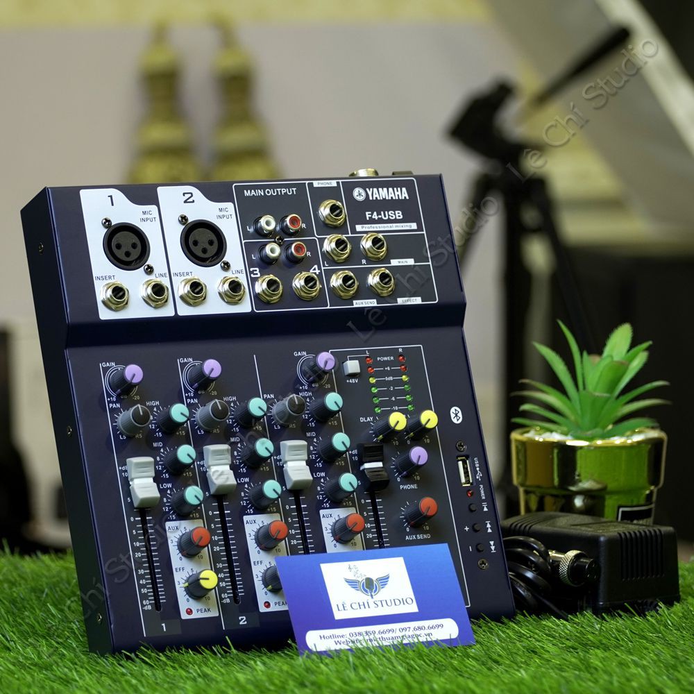 👉 Bộ trộn âm thanh Mixer F4-USB là dòng mixer mini xử lý hiệu ứng âm thanh chất lượng cao với 4 kênh đầu vào, cung cấp nguồn phantom 48V cho mic condenser, hỗ trợ nghe nhạc, thu âm và hát karaoke.