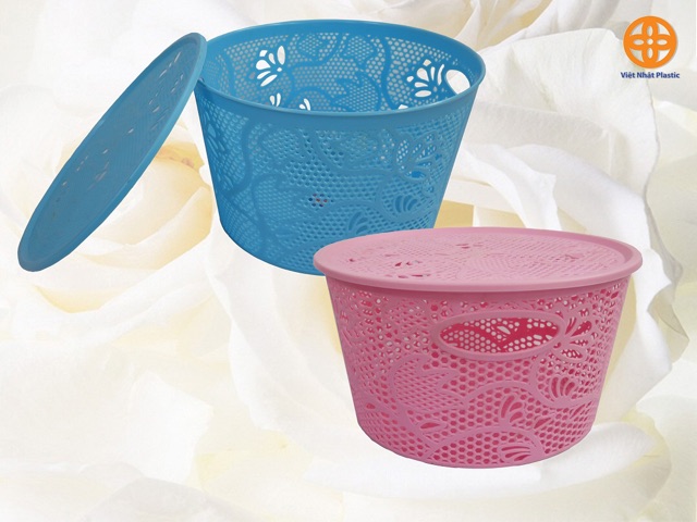 Rổ nắp hoa kiểu dáng sang trọng nhiều màu đẹp mắt, hai bên rổ có quai cầm nha khách. Đặc biệt có thể chồng nhiều tầng tiết kiệm diện tích cho nhà thêm gọn gàng.* Size nhỏ: Miệng 21.5 * Đáy 18 * C12cm