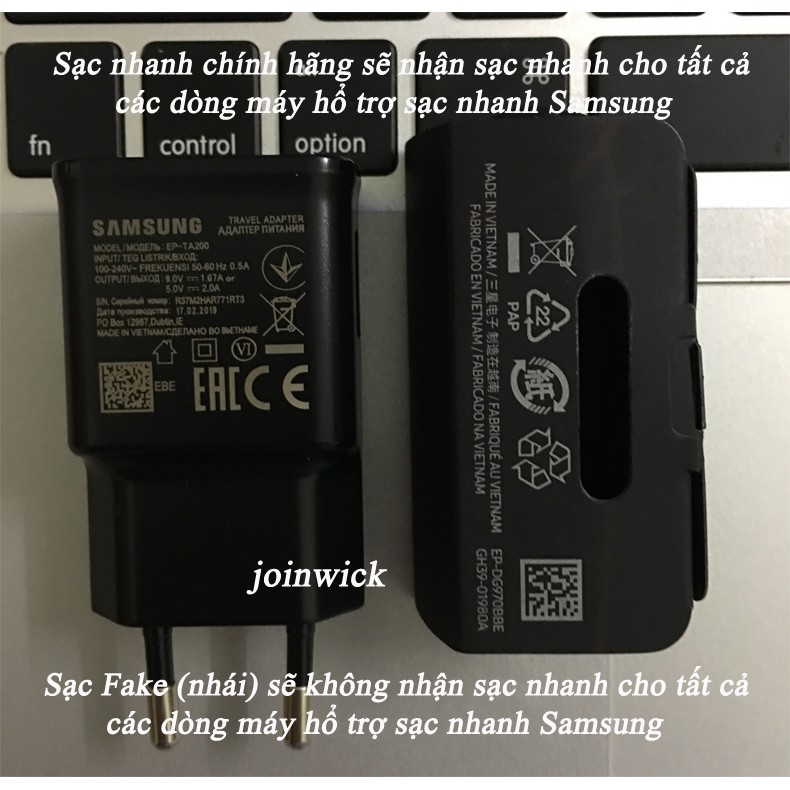 + Đối với sạc nhanh chính hãng, bạn cắm vô tất cả các dòng máy hổ trợ sạc nhanh thì phải nhận sạc nhanh. Còn sạc Fake (nhái) chỉ nhận sạc nhanh trên các dòng máy phổ biết như S9/S9 Plus/S8/S8 Plus/S7/S7 Edge/S6/Note 5, sạc Fake (nhái) khi cắm vào các dòng máy hổ trợ sạc nhanh khác như A50, A50s, A51, A30, A30S, A31, A20, A21, A21s, A9 Pro, C9, A5 2017, A7 2017, A5 2016, A7 2016 sẽ không nhận sạc nhanh.Cách khác các bạn lấy cục sạc nhanh cắm vào đế sạc không dây của.