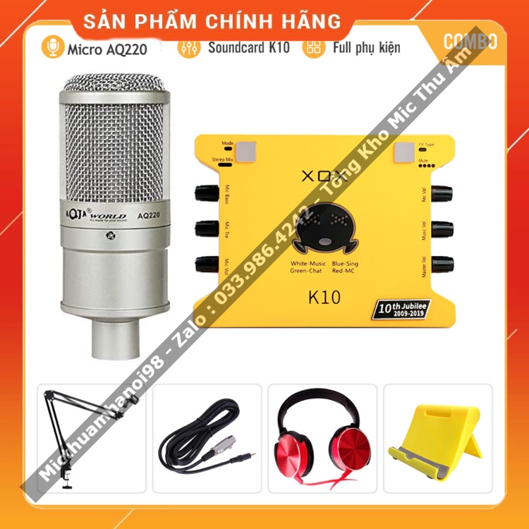Trọn Bộ Sound Card K10 Mic AQ220 Hàng Loại 1 . Âm Thanh Cực Hay , Livestream Bigo , Facebook , Tik Tok