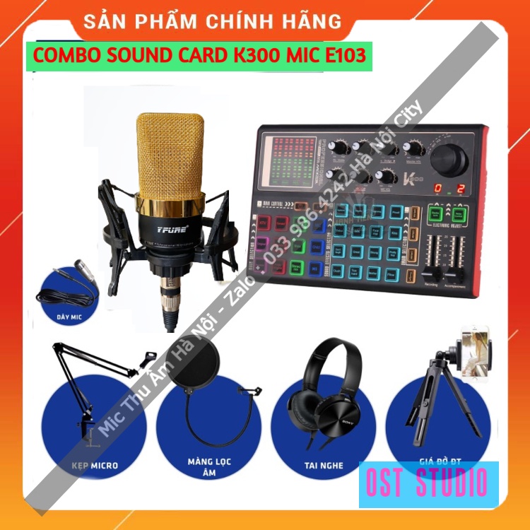 Trọn Bộ Sound Card K300 Mic Thu Âm E103 ⚡FREESHIP⚡ Hỗ Trợ Hát Autotune , Livestream , Thu Âm Cực Hay