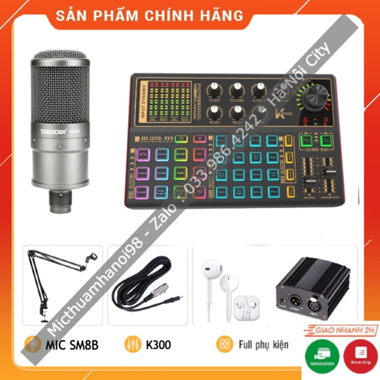 Giới thiệu Trọn Bộ Sound Card K300 Mic SM8B . Thiết Kế Cực Đẹp , Âm Thanh Sống Động , Dễ Dàng Lắp Đặt . Bảo Hành 12 Tháng