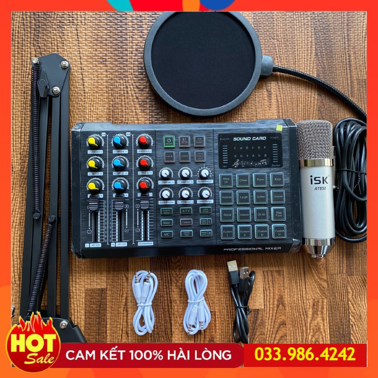 Trọn Bộ Sound Card S8 Mic Thu Âm ISK AT850 ⚡FREESHIP⚡ Đầy Đủ Chân Kẹp , Màng Lọc . Tặng Tai Nghe Kiểm Âm Khi Mua Trọn Bộ