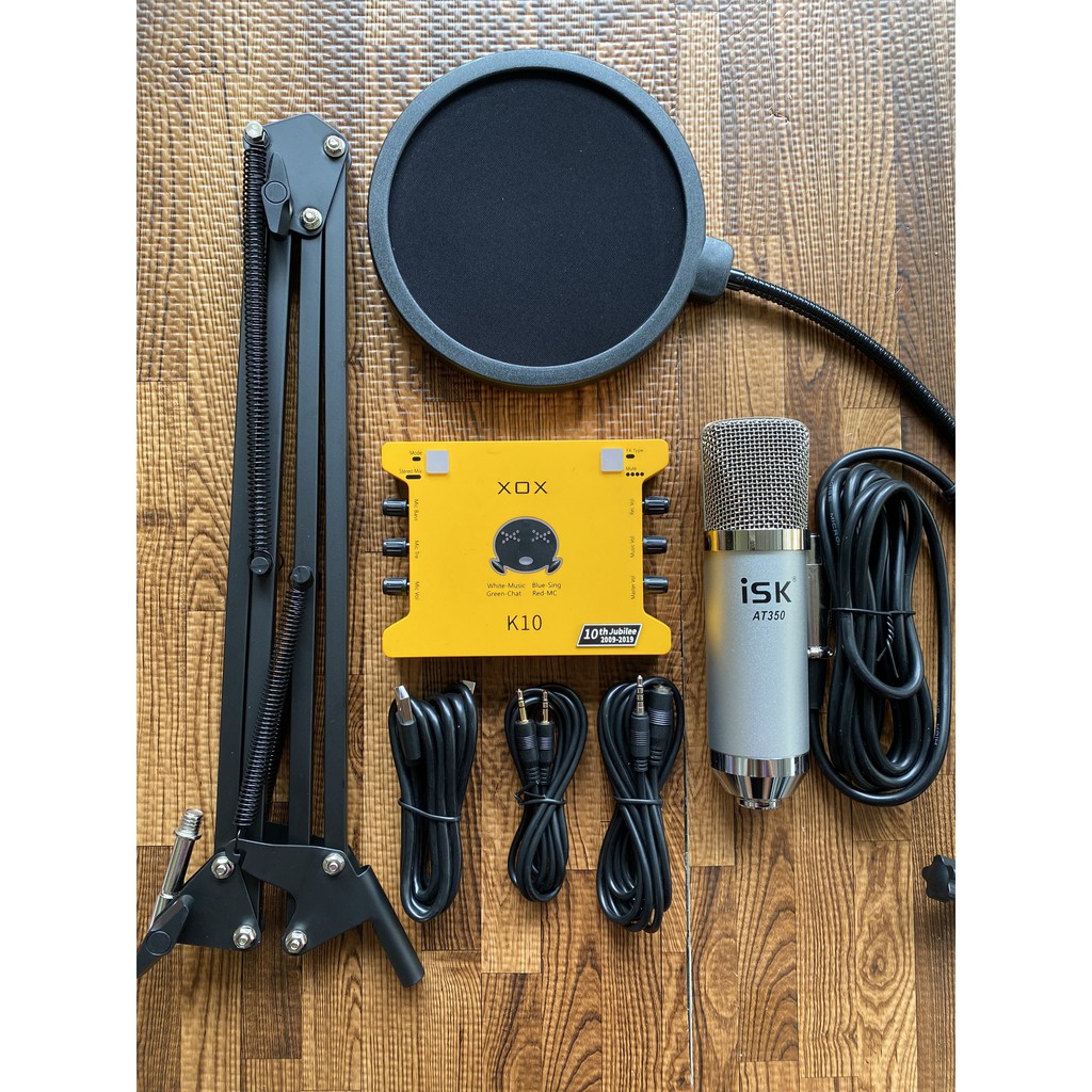 Trọn Bộ Sound Card XOX K10 2020 Mic Thu Âm ISK AT350 . Kèm Gía Đỡ Mic , Màng Lọc Âm . Tặng Tai Nghe Khi Mua Trọn Bộ