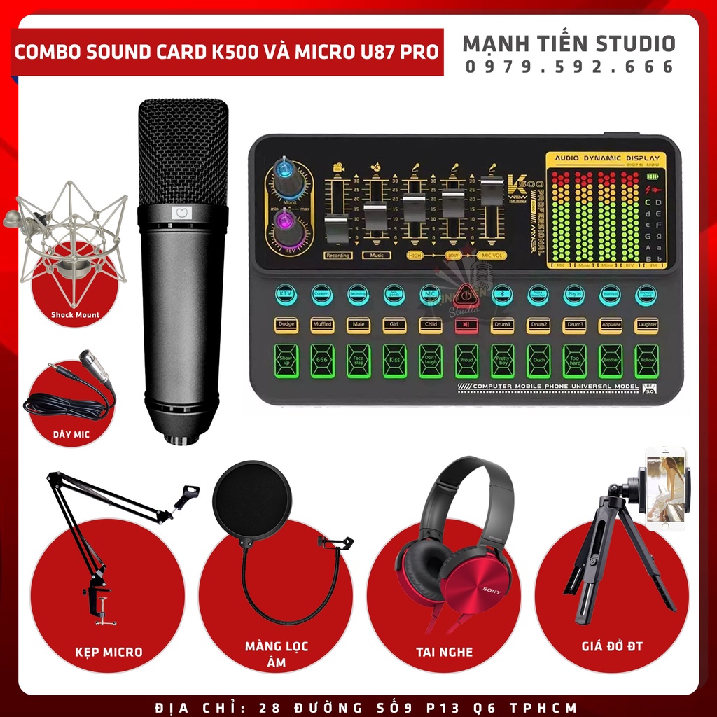 Thiết Bị Âm Thanh > Micro thu âm || Trọn bộ thu âm livestream karaoke micro U87 Pro + soundcard K600 tặng kèm kẹp micro màng lọc tai nghe giá đỡ đtCòn hàng