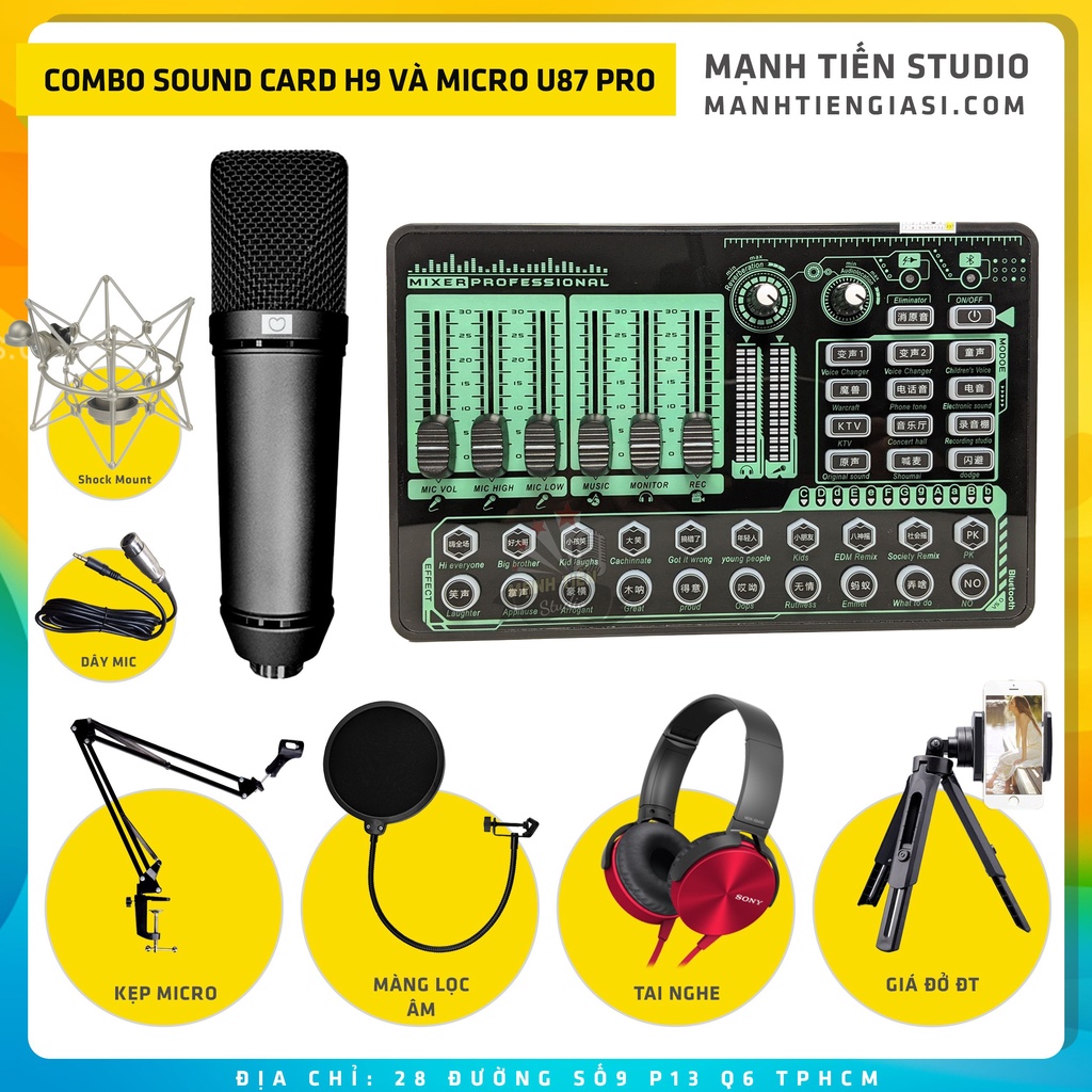 Trọn bộ thu âm livestream karaoke micro U87 Pro + soundcard H9 2021 tặng kèm kẹp micro màng lọc tai nghe giá đỡ đt