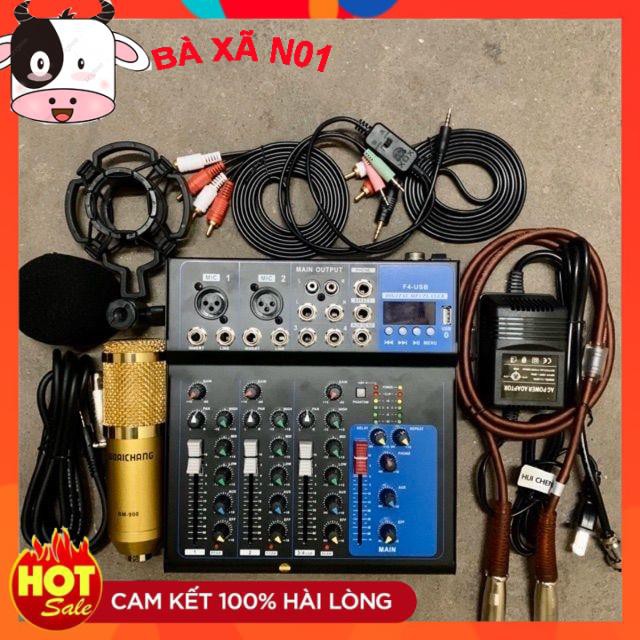 Giới thiệu Bộ Combo Micro Thu Âm Bm900 + Soundcard Mixer F4 Full phụ kiệnMixer F4 có 2 cổng Canon kết nối vào Micro và 4 cổng kết nối Jack 6mm vào các nhạc cụ khác. Chất âm mạnh mẽ của Mixer và cấu tạo như bàn chỉnh nhạc chuyên nghiệp giúp bạn hoàn toàn làm chủ âm thanh theo sở thích.