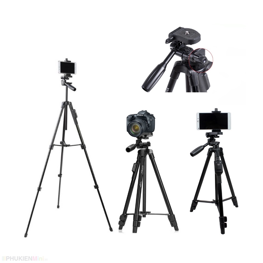 - Đầu tripod có thể điều chỉnh xoay dọc ngang hoặc nghiêng điện thoại theo hướng mong muốn