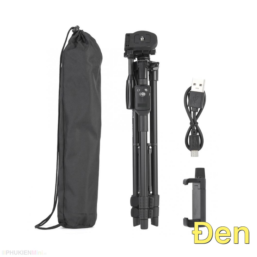 👍 Sản phẩm bao gồm: 1 bộ gồm tripod, kẹp điện thoại và remote bluetooth sạc điện