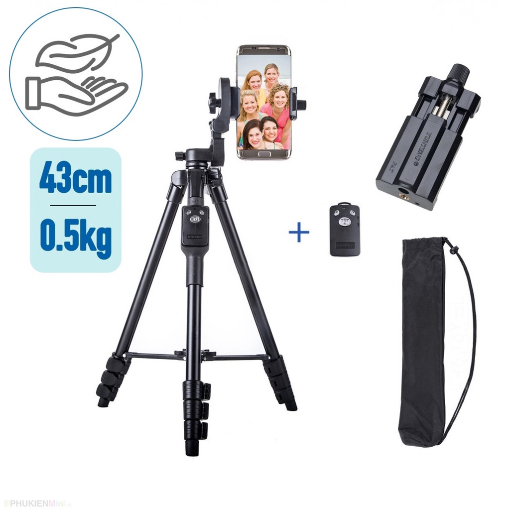 - Chân tripod hợp kim siêu nhẹ, tổng bộ chân kèm kẹp và remote chỉ nặng 0.5kg
