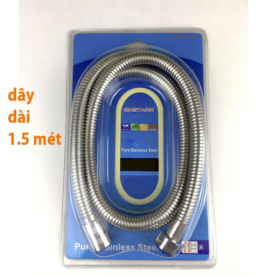 Dây vòi sen dài 1.5m bọc inox không rỉ, sài được nước nóng lạnh, bảo đảm không rỉ sét