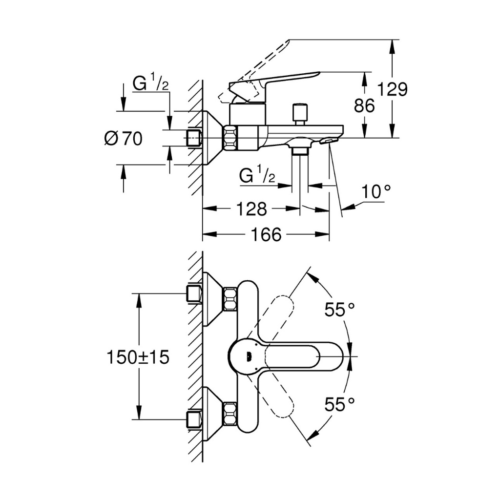 Bộ trộn nổi GROHE BAUEDGE 2 chế độ với bộ chuyển đổi chế độ sen tắm và vòi bồn tắm tiện dụng 23605000