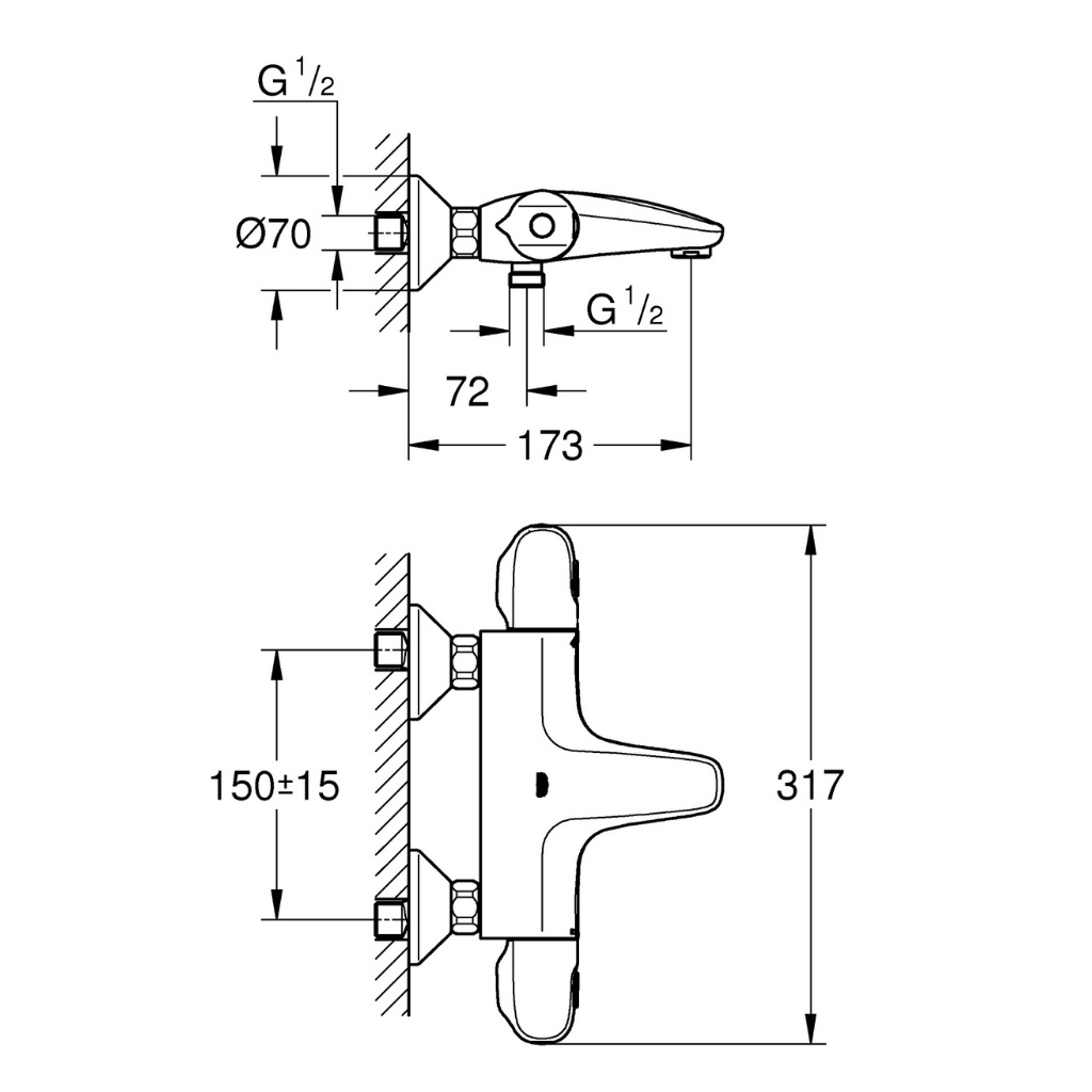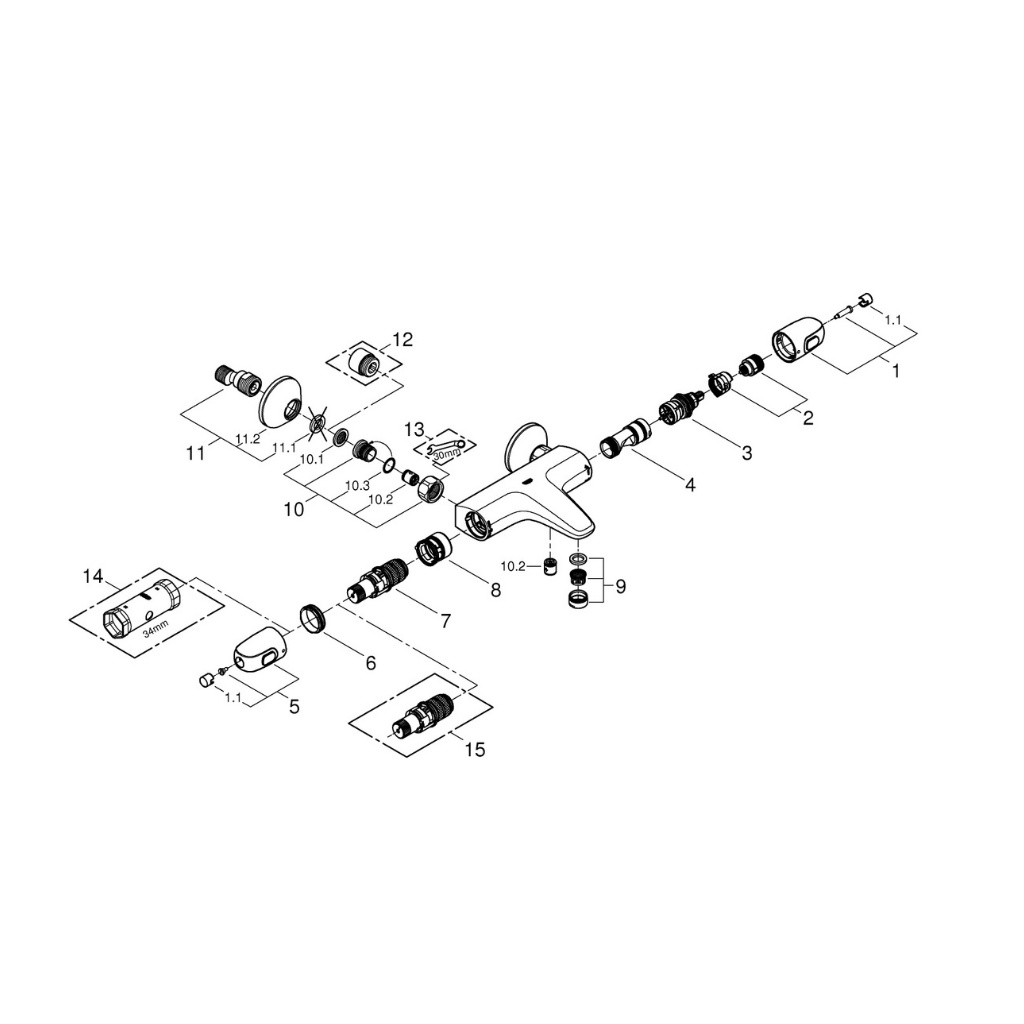 - Tên sản phẩm: Bộ trộn nổi kèm xả bồn tắm GROHE Grohtherm 1000 2 chế độ - 34155003