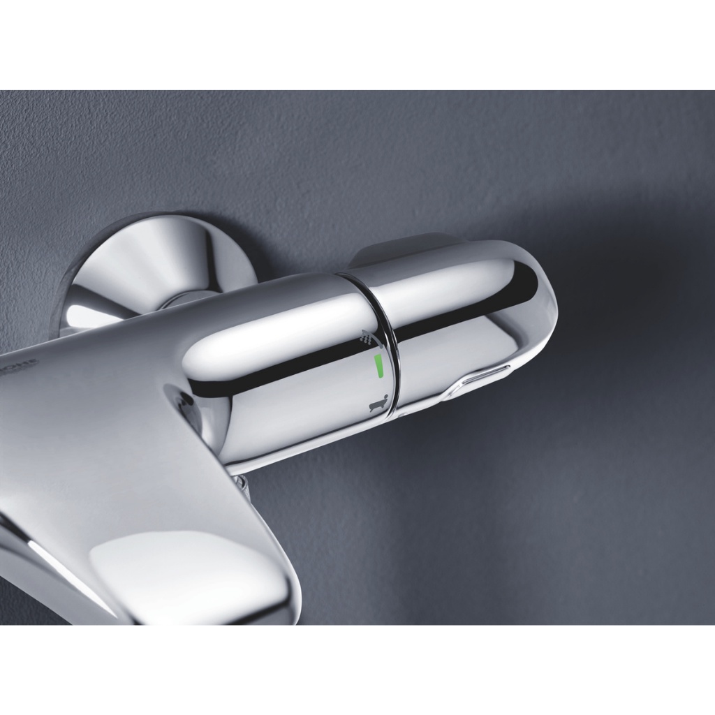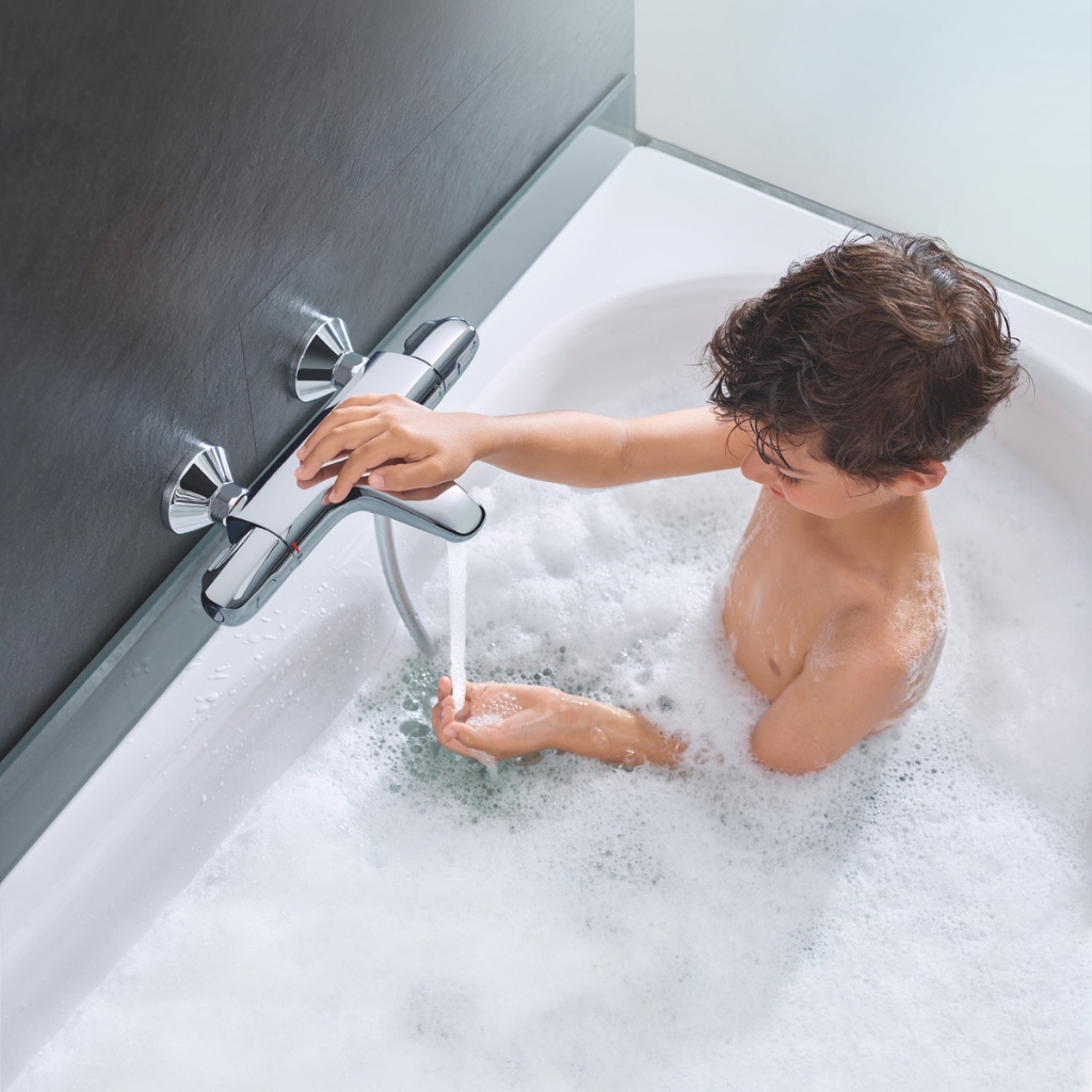 Bộ trộn ổn nhiệt dành cho bồn tắm giúp bạn không cần thêm nước nóng hoặc lạnh vào bồn tắm của mình để đạt được nhiệt độ mong muốn. Bộ trộn xả bồn tắm hiện đại tích hợp công nghệ GROHE TurboStat để đảm bảo bạn có thể tắm ở nhiệt độ chính xác mà bạn đã chọn cho dù nhiệt độ nước cấp bị thay đổi. Hai tính năng an toàn tuyệt vời là GROHE CoolTouch giúp bề mặt bộ trộn không bị nóng khi chạm vào và GROHE SafeStop giúp ngăn tình trạng vô tình tăng nhiệt độ. Nút GROHE EcoButton được tích hợp sẵn giúp tiết kiệm nguồn nước quý giá và bảo vệ môi trường. Bộ ổn nhiệt được hoàn thiện bằng lớp mạ chrome GROHE StarLight sáng bóng, bền và có tay cầm với thiết kế đảm bảo sự tiện dụng.