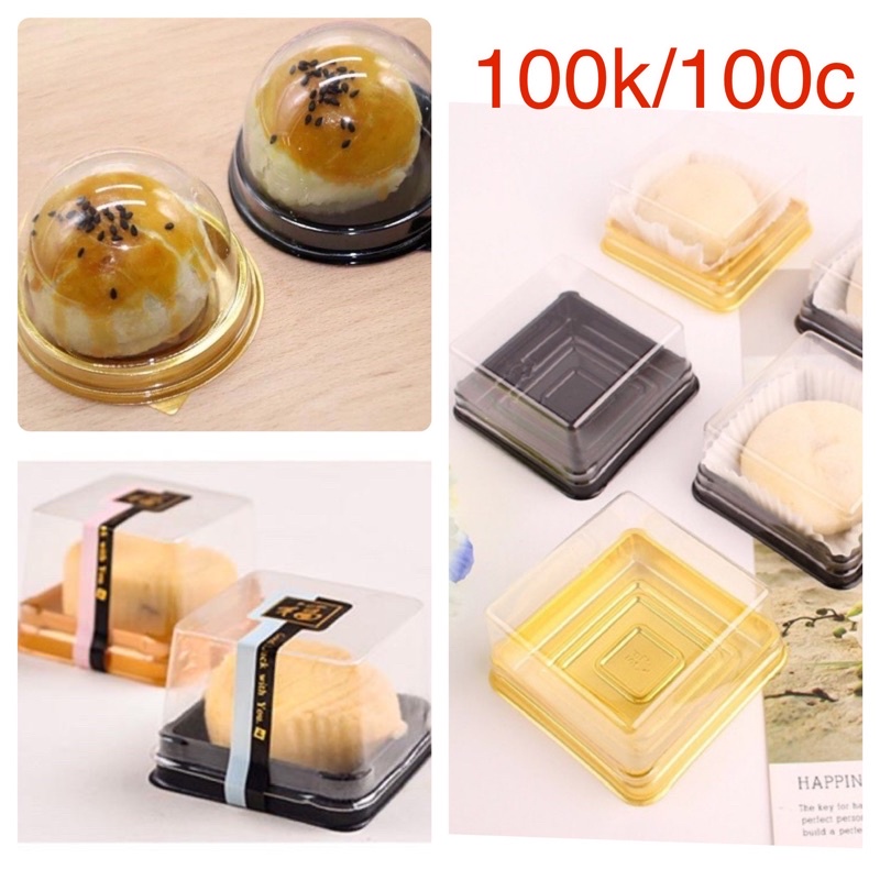 Nhà cửa & Đời sống > Dụng cụ nhà bếp > Dụng cụ nướng & trang trí bánh || [Tròn/vuông] 10 Hộp pet bánn trung thu 50-75g đen, vàngCòn hàng