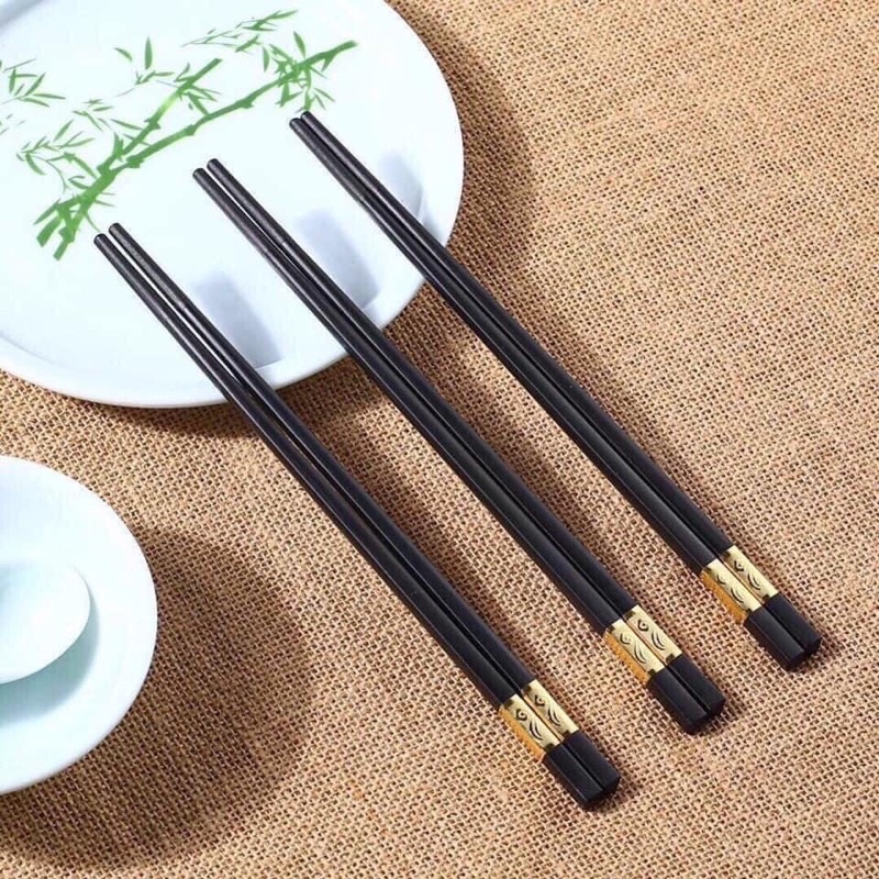 Nhà cửa & Đời sống > Bộ đồ bàn ăn > Dĩa || [SANG TRONG] Hộp 10 đôi Đũa đen mạ vàng sang trọngCòn hàng