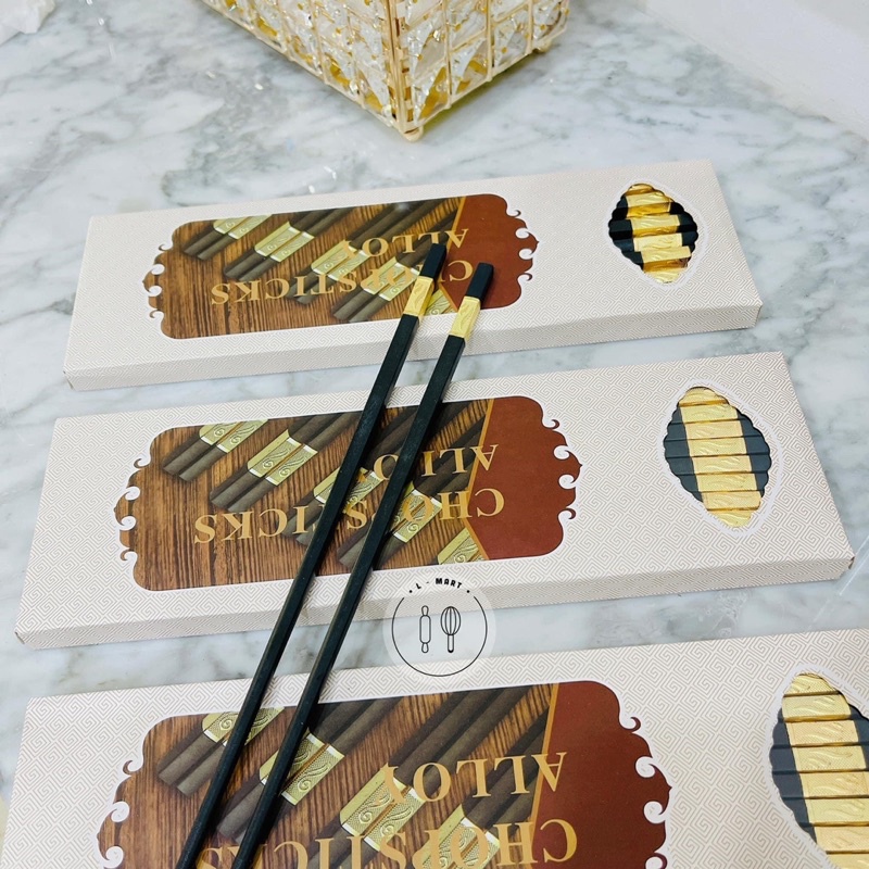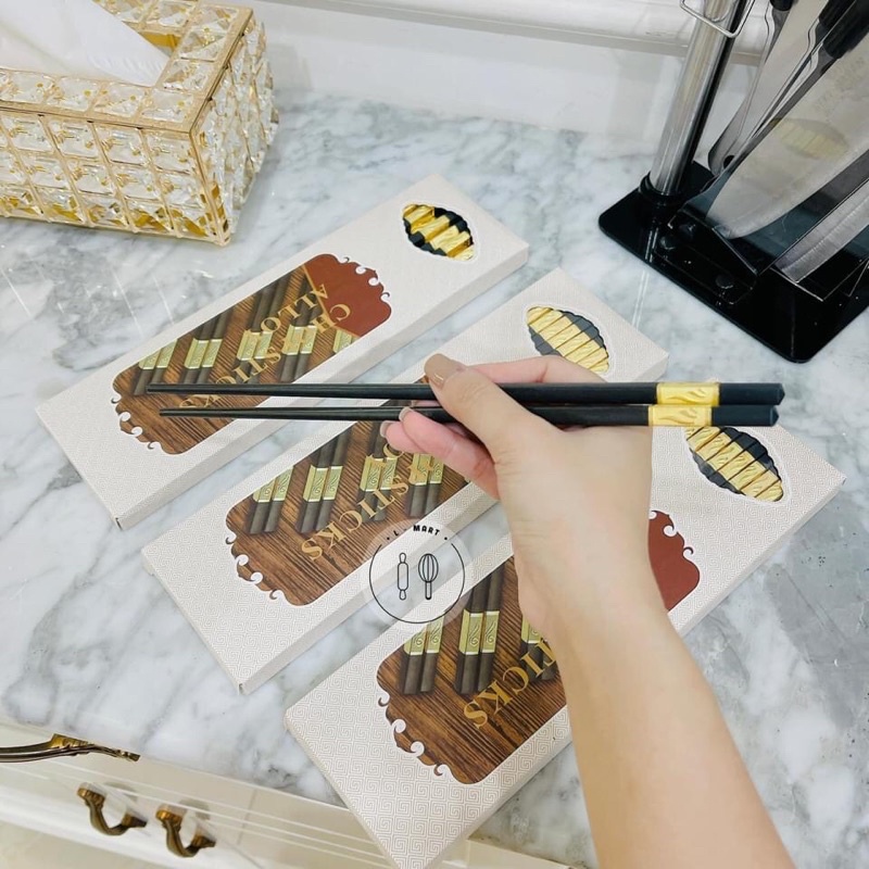 [SANG TRONG] Hộp 10 đôi Đũa đen mạ vàng sang trọng