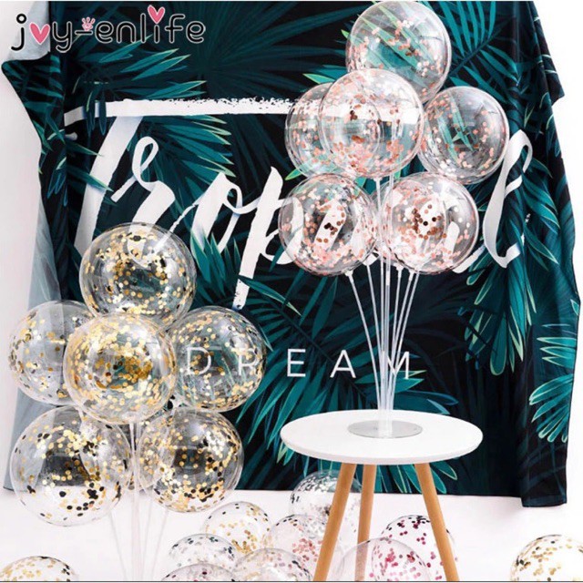 TRỤ BÓNG BAY, trụ gắn bóng giả bóng bay bao gồm 1 đế dựng bằng mica, 7 que cắm bóng, 7 móc cài bóng y như video shop quay.Bao gồm:
