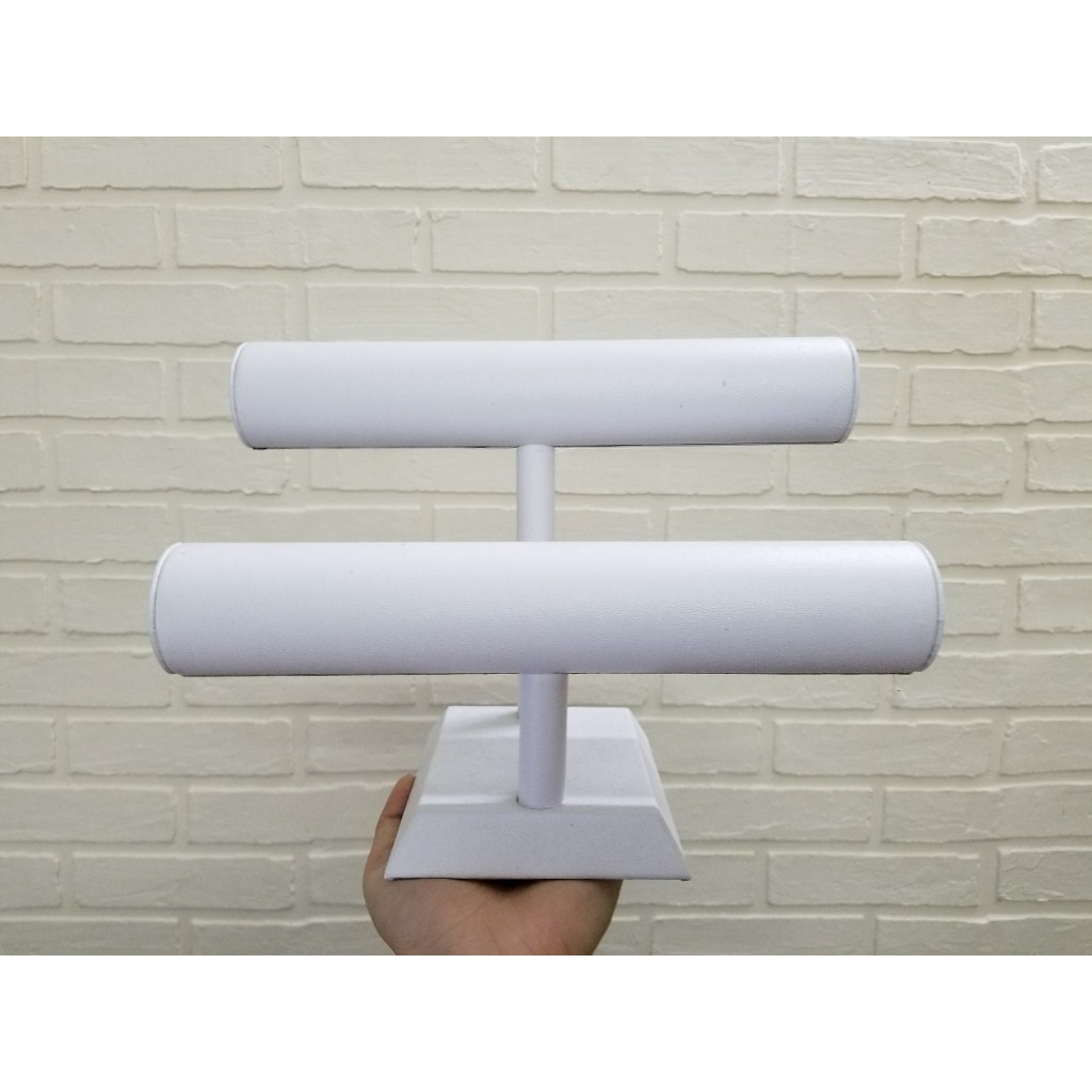 Trụ chữ T 2 tầng bọc da màu trắng màu đen màu đỏ trưng bày trang sức trưng bày chuỗi đá phong thủy