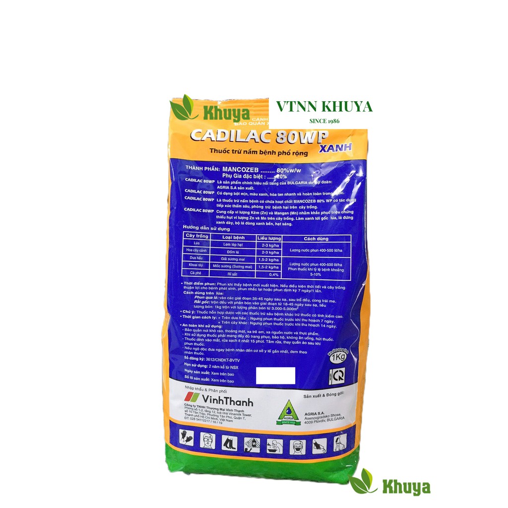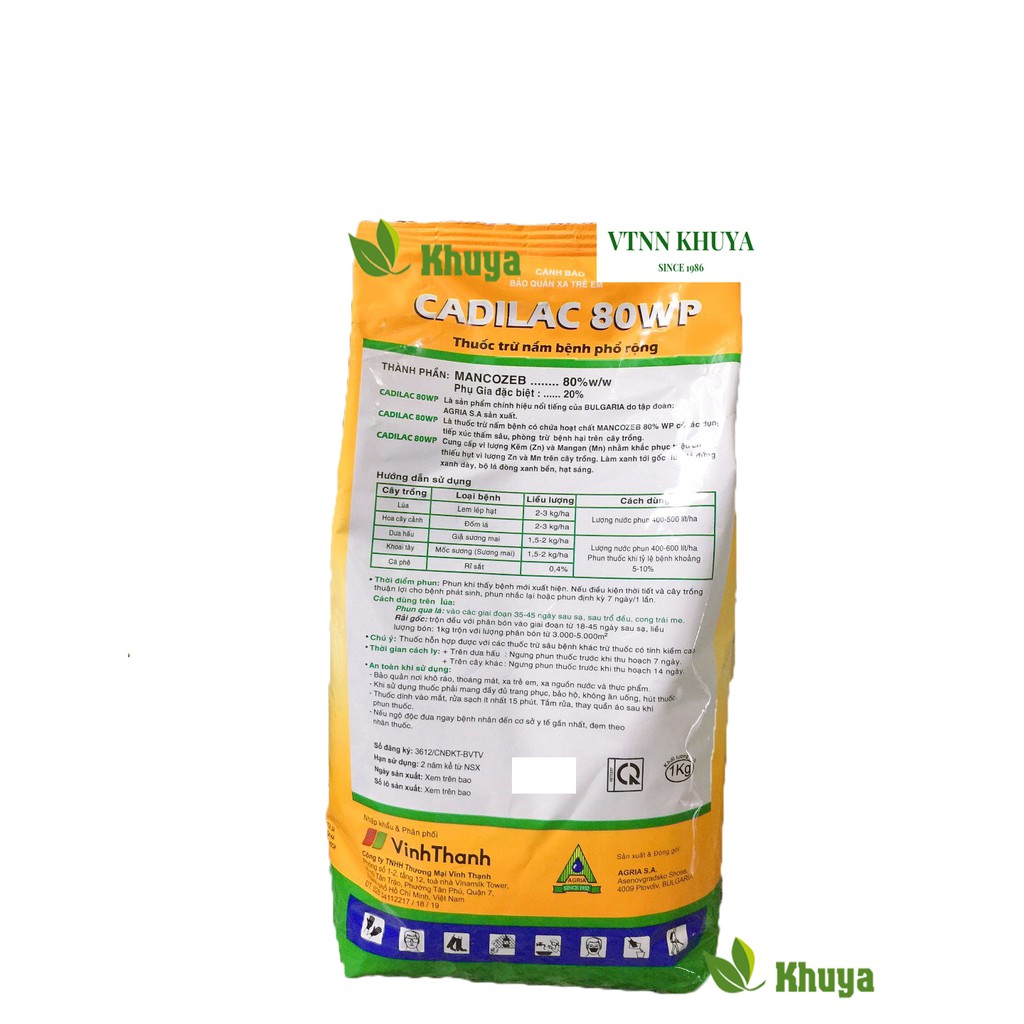 Trừ Nấm Bệnh CADILAC 80WP 1kg Ấn Độ gốc MANCOZEB* Hoạt chất : Mancozeb 80% w/w, phụ gia đặc biệt 20%