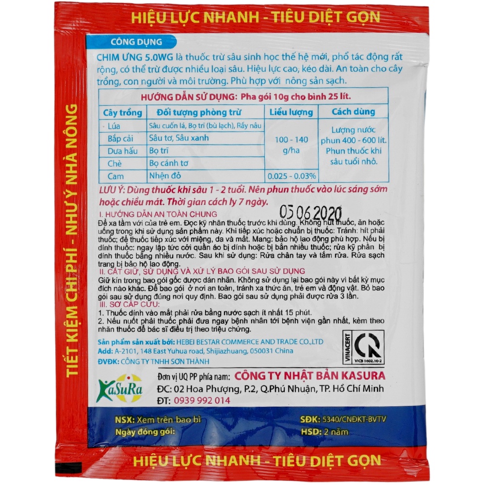 Trừ Sâu Sinh Học Đại Bàng Lửa Chim Ưng 5.0WG - Gói 10g (TTS-002-0DBL).